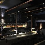 The interior is an intimate affair with black painted brick walls, dimmed lighting from strategically placed downlights and exposed copper piping. Seating is mostly in the form of booths on the inside and small tables in the outside beer garden area. There is also bar seating along the bar that shares one end of the interior dining space. A small alcove to one side of the interior showcases the giant orange and black Yoder smoker.